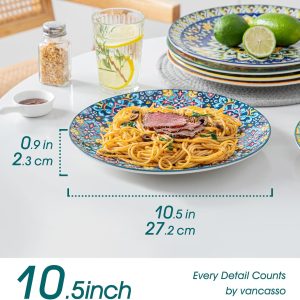 Bohemian Ceramic Dinner Plates Set of 6 – 10.5″, Microwave & Dishwasher Safe