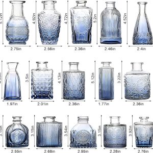 Set of 32 mini glass bud vases — includes clear and blue vintage-style designs