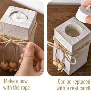 Rustic LED Candles Set with Wooden Holders – 3 Pack
